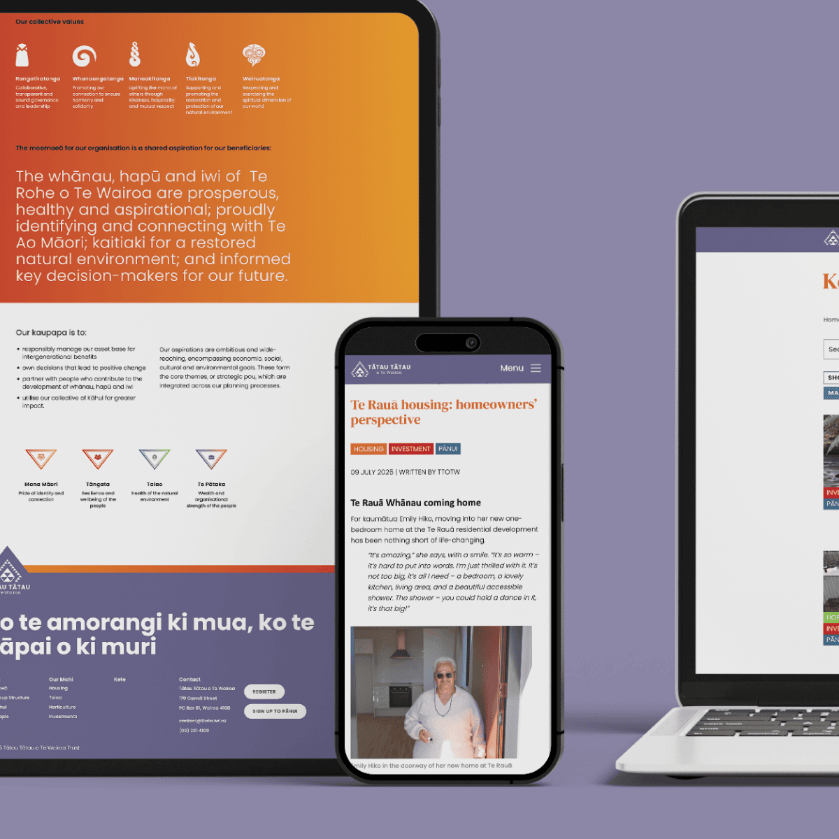 When Tātau Tātau o Te Wairoa needed a new website, the goal was clear: keep iwi and hapū connected to the mahi happening across the rohe. At the same time, it was a chance to bring their evolving brand identity to life — celebrating iwi achievements while creating a central hub for updates and resources.